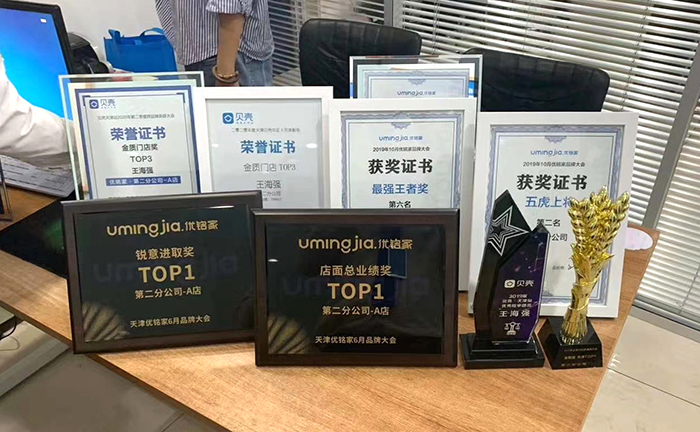 新的时机和环境,让王海强迎来了更大的挑战,而他也不辱使命,带领团队不断实现突破。团队从开店之初的7人,发展到了如今的16人;业绩从无到有逐渐提升,并于2020年上半年跃居天津优铭家第二名,全国优铭家第八名!