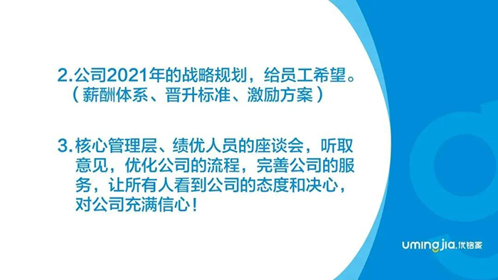 第三个,关于核心管理层和绩优人员的座谈会。