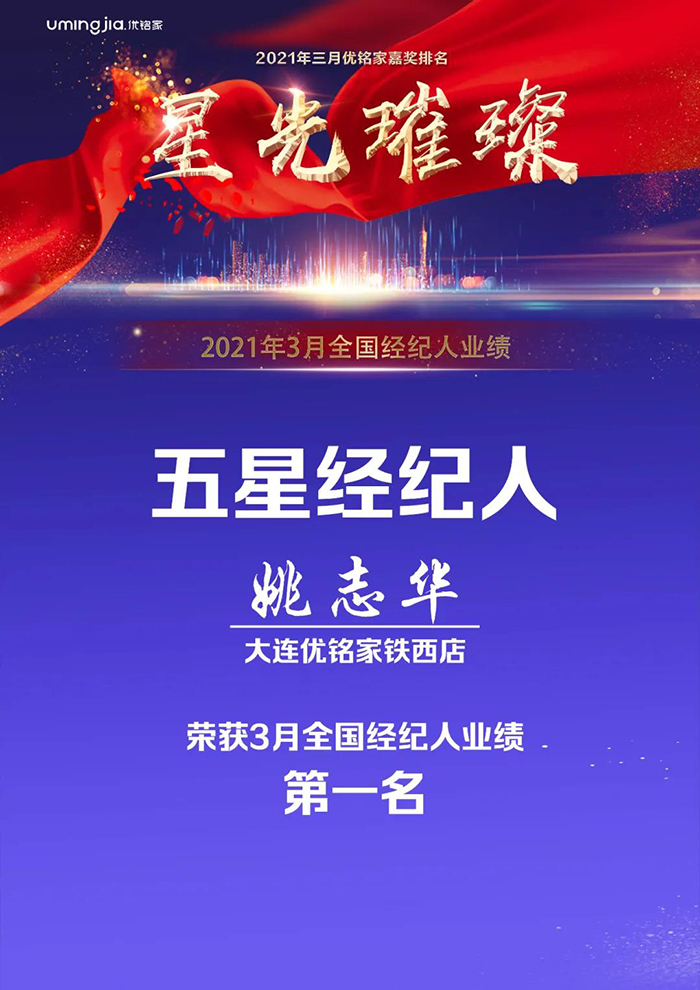 而年龄60+的姚志华,在退休后却选择了另一种人生:加入房产经纪行业,奋斗出新的精彩。2021年3月,入行不到2年,加盟优铭家不到1年的姚志华,以7单买卖业务,赢得了全国优铭家经纪人单量第一名荣誉。